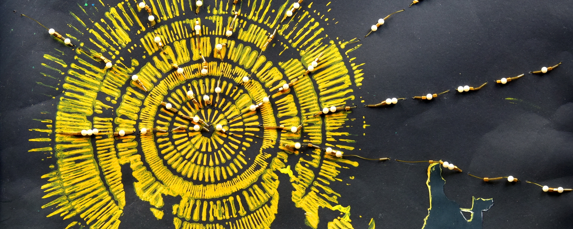 "I was blessed to have had a sister for only a short time. The gift of her life changed my life; just as Imogen brought me gifts of compassion, respect and kindness, the Magi presented material gifts of gold, frankincense and myrrh to baby Jesus. ‘When they saw that the star had stopped, they were overwhelmed with joy’ (Matthew 2:10). I feel that God chose our family to bring us Imogen as a gift of joy. And like the star that shone for the Wise Men, and continues to shine for us today as a symbol of hope, Imogen’s spirit continues to shine for me. The gift of my sister inspires me to share the gifts of God with everyone around me. I was inspired by 18th Century artist Auguste Edouart because of his love of silhouettes and paper cutting. I used the technique of stencilling, using a round placemat and acrylic paint. Two of the Wise Men were placed beneath the stencil and the third added after printing to symbolise guidance. I threaded gold wire through the design to show the brilliant light shining from the mystical star. I made the star big just as my sister’s heart was."