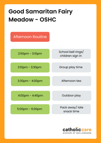 CatholicCare OSHC - Good Samaritan is located on school grounds and provides: