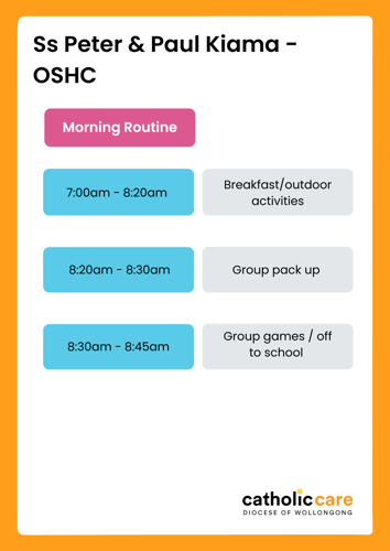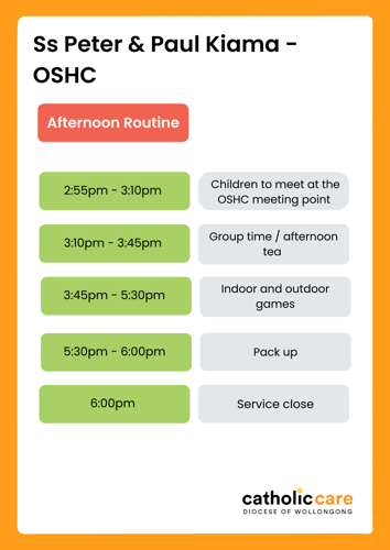 Enrol Now Ss Peter & Paul OSHC Flyer Vacation Care FlyerOur OSHC services are eligible for the Child Care Subsidy, which can help reduce the cost of care. While we do not provide direct assistance with applications, you can find more information or apply through Centrelink: