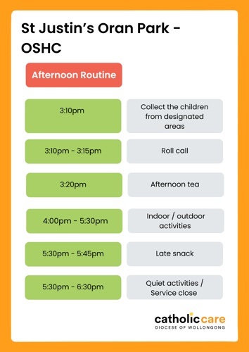 Enrol Now St Justin's OSHC Flyer Vacation Care FlyerOur OSHC services are eligible for the Child Care Subsidy, which can help reduce the cost of care. While we do not provide direct assistance with applications, you can find more information or apply through Centrelink: